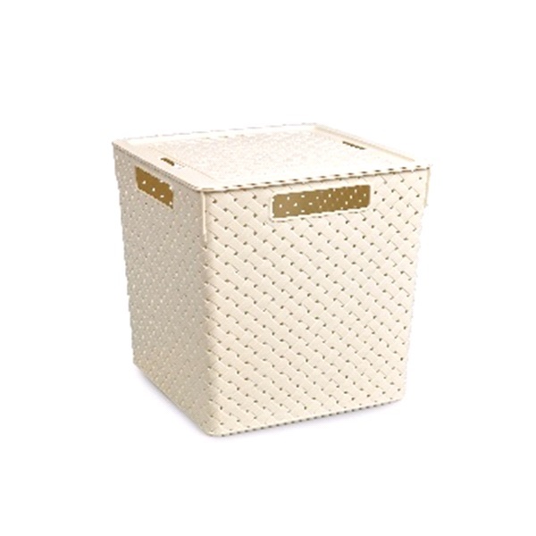 Коробка "Береста" 23л с крышкой квадр.(слоновая кость) (то)