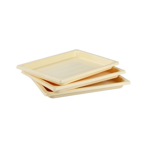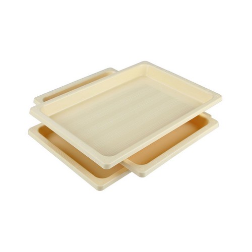 Углубленные прямоугольные подносы очень удобны для заморозки пельменей, мантов, котлет, так как решают вопрос рационального размещения большого количества заготовок. Высокие бортики защищают продукты от случайного падения при выемке из морозильной камеры. На дне изделия имеются рельефные полосы, предотвращающие прилипание продуктов к подносу, после заморозки их легко снять с поверхности.0.456 кг 360х90х290 мм