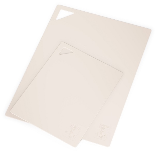 Разделочная доска – незаменимый аксессуар на любой кухне. Использование современной гибкой доски значительно облегчает процесс приготовления пищи, поскольку эту доску можно легко согнуть и перенести нарезанные продукты в кастрюлю или салатник, не рассыпав содержимое. Благодаря мягкости материала нож не тупится. На доске имеется отверстие для удобного захвата и хранения в подвешенном состоянии. Изделие безопасно и химически нейтрально. Доска гибкая имеет противоскользящую матовую поверхность, которая легко очищается как при ручном мытье, так и в посудомоечной машине. В наборе досок два оптимальных размера для разных видов продуктов.