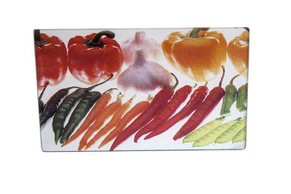 Поверхность доски устойчива к воздействию режущих инструментов. Выдерживает температуру посуды после нагревания на газовых и электрических плитах. Пластиковые ножки предотвращают скольжение и обеспечивают термоизолирующие свойства. Изготовлена из стекла, гигиенична, не впитывает запахи и легко моется.
