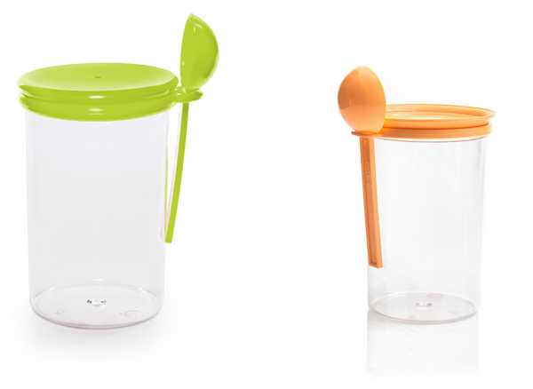 Для удобства эксплуатации в комплект к банке входит специальная ложка, для того чтобы пересыпание продуктов было наиболее удобным и комфортным. Ложка крепится к банке на специальную петлю, обеспечивая более плотное закрытие крышки.