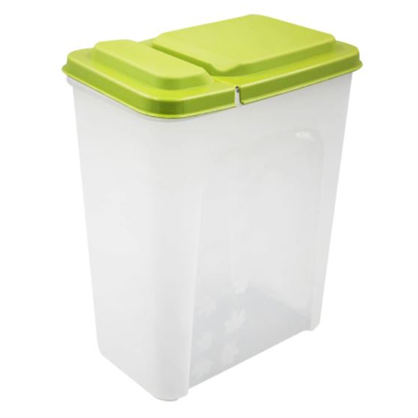 Емкость для сыпучих продуктов имеет откидную крышку, которая фиксируется в вертикальном положении. Поверхность емкости комбинированная - полированная с растительным декором и матовая, на которой не остается следов рук. Прямоугольная форма позволяет оптимально расположить емкости на полке, их можно ставить одна на другую.