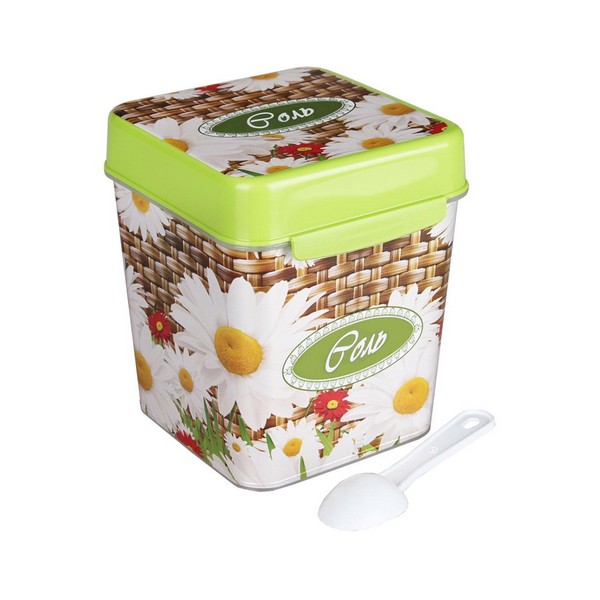Квадратная ёмкость с откидной крышкой предназначена для хранения наиболее востребованных сыпучих продуктов: чая, сахара и соли. Яркий рисунок нанесен на изделие при помощи технологии IML. Он не стирается и не повреждается в процессе эксплуатации. Декор дарит особый колорит изделию и создает определенную стилистику кухни. Тематическая надпись позволяет соблюдать порядок размещения продуктов на кухне. В комплект входит мерная ложка для удобства использования. Изделие изготовлено из качественного пластика, безопасного для здоровья человека.0.116 кг 130х115х140 мм
