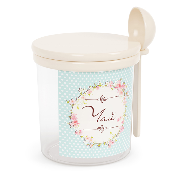 Изделие предназначено для хранения различных сыпучих продуктов: чая, соли, сахара, кофе. Прозрачность ёмкости позволяет видеть содержимое, а тематическая наклейка на ней - соблюдать порядок размещения продуктов на кухне. Крышка плотно закрывает банку и надежно защищает продукты от влаги и мусора. На специальном ободке крепится мерная ложка для удобства использования. Изделие изготовлено из качественного пластика, безопасного для здоровья человека.0.099 кг 110х110х123 мм