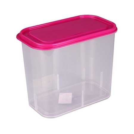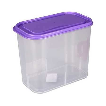 В этой ёмкости удобно хранить различные сыпучие продукты: крупы, макароны, сухие завтраки, орехи, муку, какао и многое другое. Под разные нужды в серии имеются ёмкости разных объёмов (1л, 1,5л, 2л, 3л). Прозрачность корпуса дает возможность видеть содержимое, а крышка защищает его от влаги и вредоносных жучков. Специальная форма крышки и дна корпуса позволяет ставить ёмкости друг на друга, предотвращая соскальзывание, тем самым экономя место на полке кухонного шкафа. Благодаря прямоугольной форме и небольшой ширине ёмкости удобно брать одной рукой.0.136 кг 185х118х150 мм