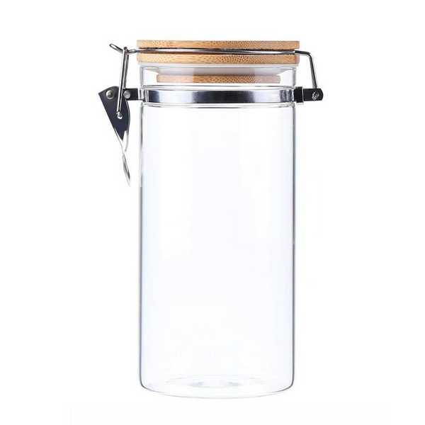 Банка стеклянная с бамбуковой крышкой с защелкой Ф-10см Н-20см