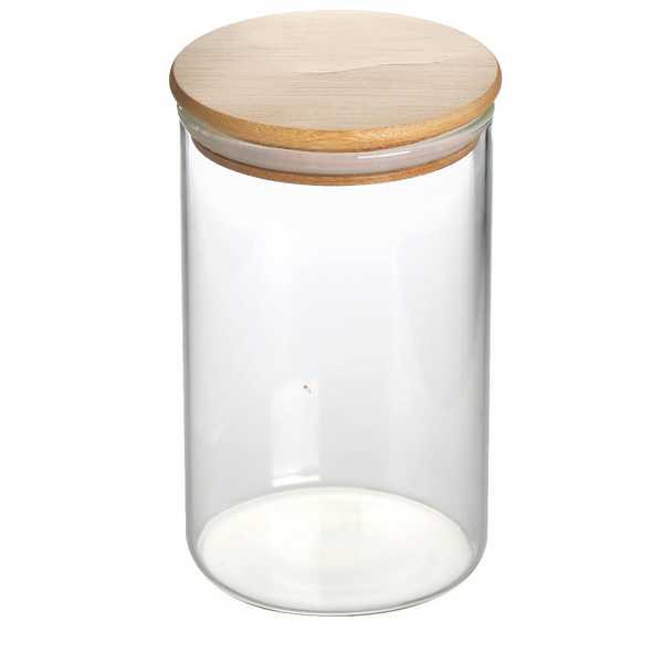 Банка стеклянная с бамбуковой крышкой Ф-10см Н-15см