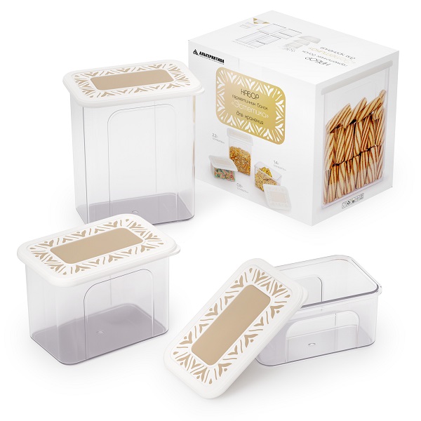 Набор банок для сыпучих продуктов "Эстетика" прямоугольные (бело-бежевый) (то)