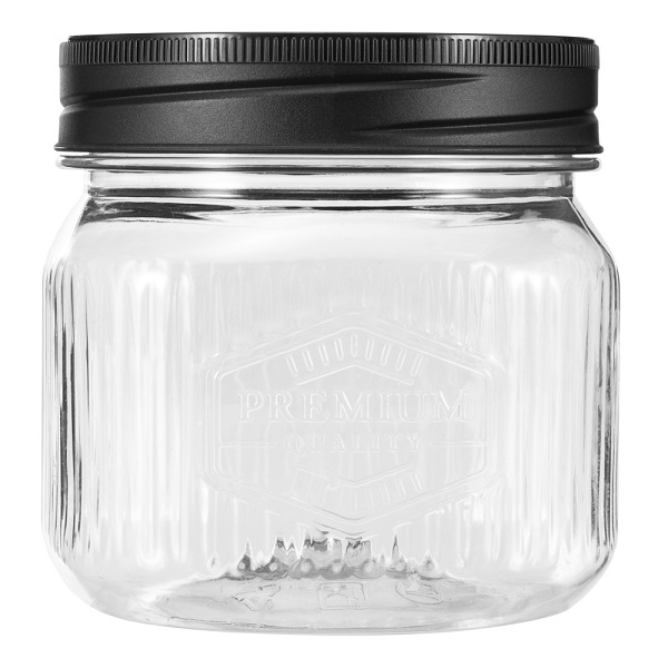 Банка квадратная с рельефом и эмбоссингом PREMIUM 0,6л (Черный) (то)
