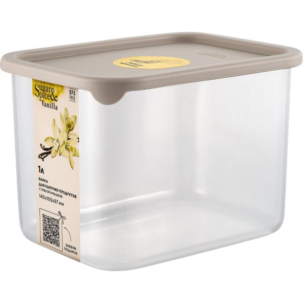 Банка для сыпучих продуктов Vanilla прямоуг. 1л с гибк.крышк. латте (то)