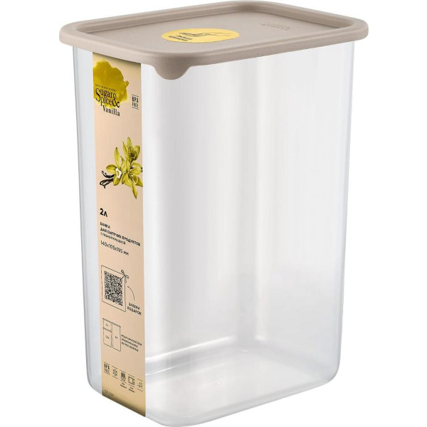 Банка для сыпучих продуктов Vanilla прямоуг. 2л с гибк.крышк. латте (то)