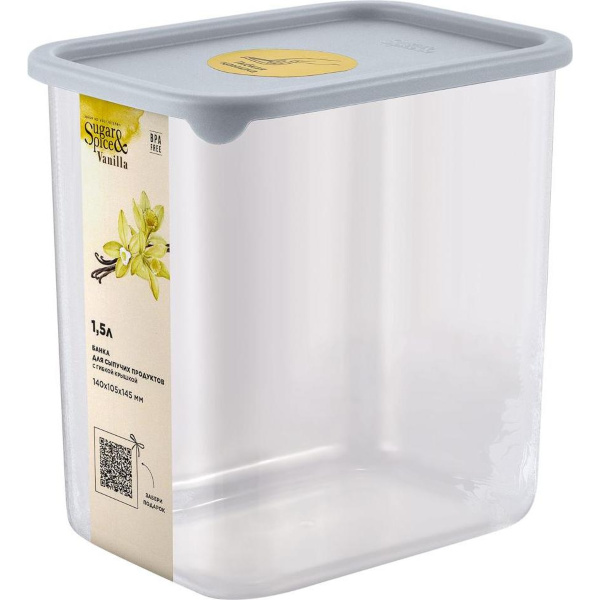 Банка для сыпучих продуктов Vanilla прямоуг. 1,5л с гибк.крышк. трюфель (то)