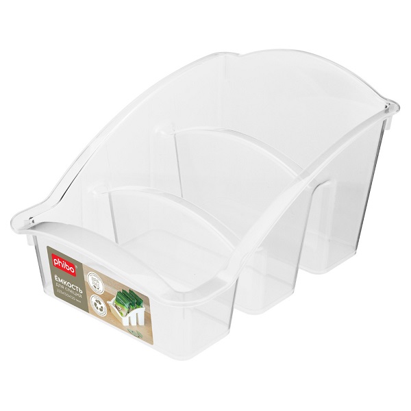 Практичная и функциональная емкость для хранения пакетов и баночек со специями гармонично впишется в кухонный интерьер и не займет много места. Три секции, разделенные перегородками, имеют разный уровень, что позволяет хранить пакеты и баночки разных размеров. С фронтальной стороны емкость задекорирована яркой этикеткой.
