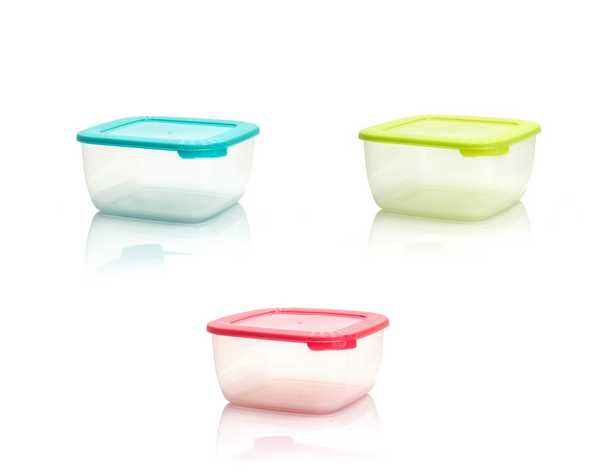 Благодаря своей квадратной форме компактный, но при этом достаточно вместительный контейнер, занимает совсем немного места при хранении