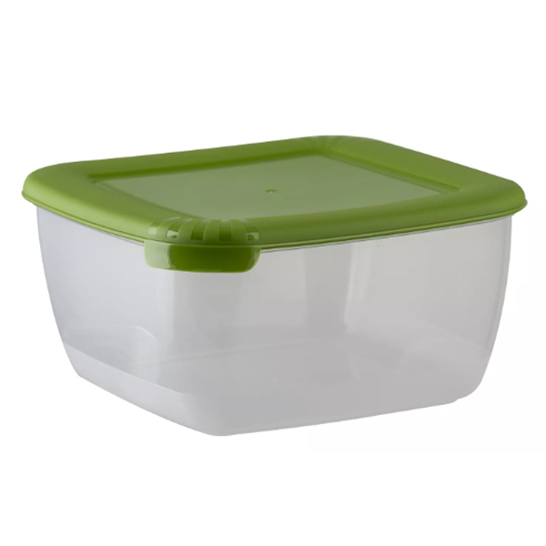 Благодаря своей квадратной форме компактный, но при этом достаточно вместительный контейнер, занимает совсем немного места при хранении