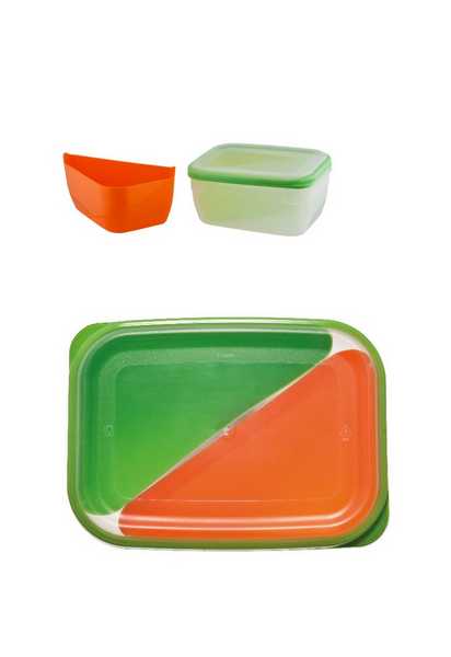 Представленный контейнер отличается особой практичностью и функциональностью, так как разделен сразу на 2 полезные секции, в которые Вы можете поместить различную еду. Изделие является прекрасным вариантом для людей, придерживающихся раздельного питания.