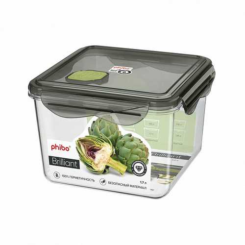 Контейнер для продуктов герметичный с клапаном "BRILLIANT" квадратный 1,7л (то)