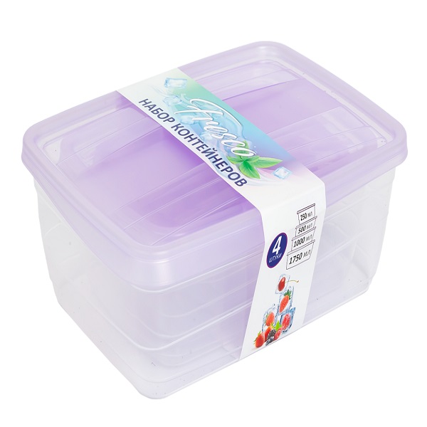 Набор контейнеров 4 в 1 Fresco 250,500,1000,1750мл (лаванда) (то)