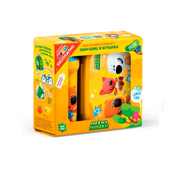 Набор: ланч-бокс 0,98л и стакан с крышкой с петлей 0,4л "МИ-МИ-МИШКИ" (Оранжевый)(то)