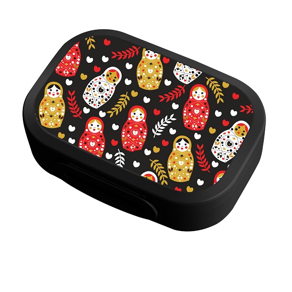 Ланч-бокс с декором 0,98л "МАТРЕШКИ" (Черный)(то)