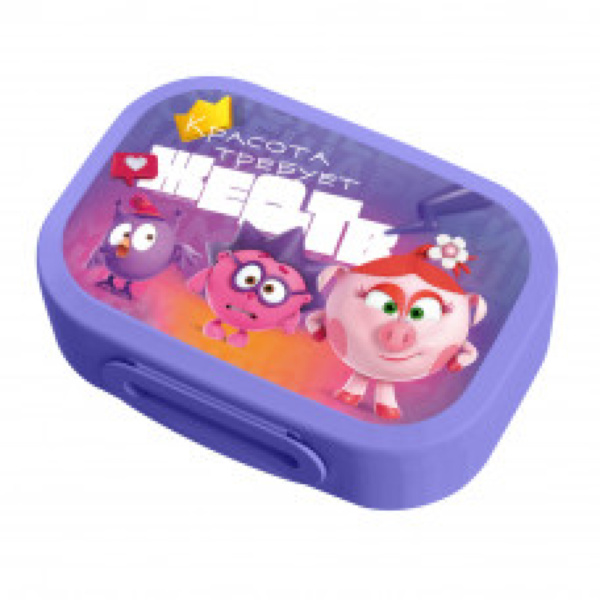 Ланч-бокс с декором 0,98л "СМЕШАРИКИ" (Сиреневый)(то)