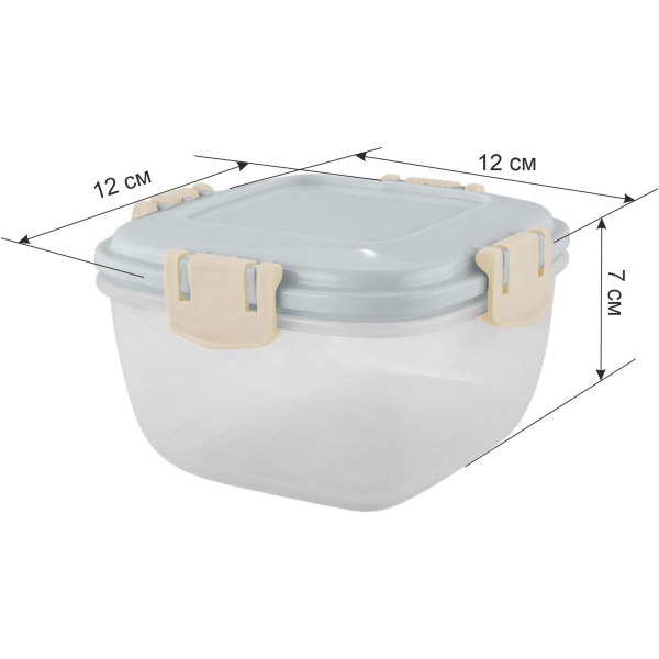 Контейнер для продуктов Sugar&Spice Barberry герметичный 0,35л квадратный – прекрасное решение для переноски и хранения еды. Крышка со специальными блокирующими защелками с 4-х сторон и силиконовым уплотнителем обеспечивает 100% герметичность. Продукты дольше остаются свежими, сохраняя свой первоначальный вкус. Благодаря прозрачному корпусу можно увидеть содержимое контейнера, не открывая его. Контейнер можно мыть в посудомоечной машине, разогревать в микроволновой печи и хранить в холодильнике. Фиксируемая штабелируемость контейнеров позволит сохранить порядок на ваших полках и сэкономить пространство. Коллекция контейнеров Barberry разработана с учетом потребности в разных литражах, начиная от самого маленького 0,35л до самого большого 1,8л. Маленькие контейнеры предназначены для порционной переноски, большие - для хранения продуктов дома. Размер контейнера: 12х12х7см. Температурный режим: от -20°C до +70°С.