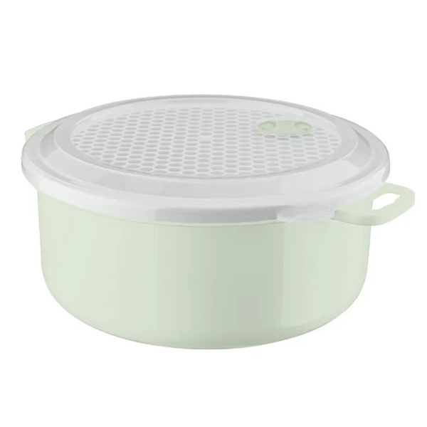 Емкость можно использовать для хранения продуктов в холодильнике, а так же для разогревания пищи в микроволновой печи. В микроволновой печи можно использовать, не снимая крышки (при открытом клапане), что ускоряет процесс и предохраняет внутреннюю поверхность микроволновой печи от загрязнения. Клапан для выпуска пара имеет два положения: открыт/закрыт. Прозрачная крышка позволяет следить за процессом приготовления пищи. Емкость имеет удобные ручки.