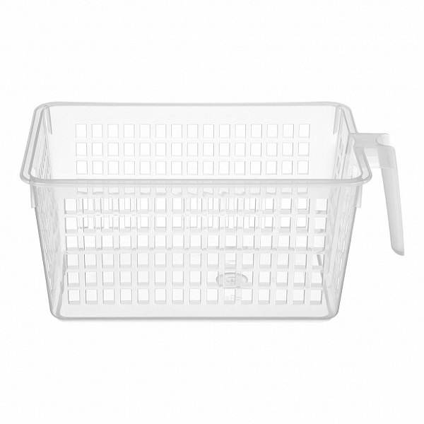 Универсальная корзинка подходит для организации хранения на вашей кухне и в холодильнике. Простое решение для хранения фруктов, овощей, йогуртов, сыров и других продуктов на полках холодильника. Высокие стенки корзинки позволят удобно хранить соусы в упаковке дой-пак.