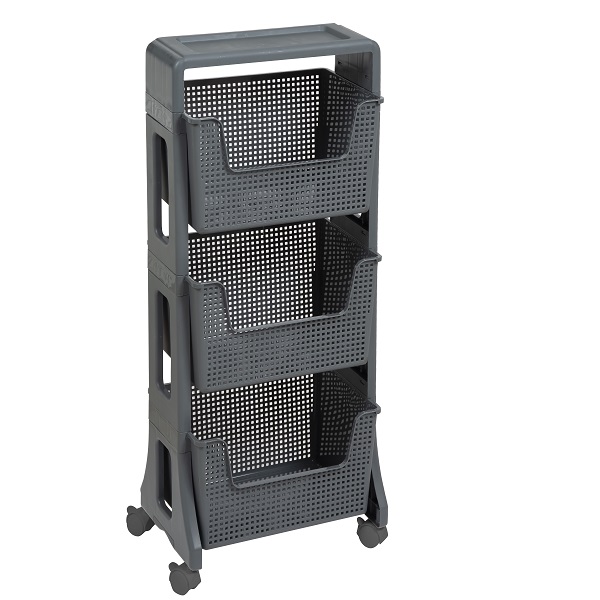 Этажерка "Лофт" 3-х ярусная на колесах (серый) (то)