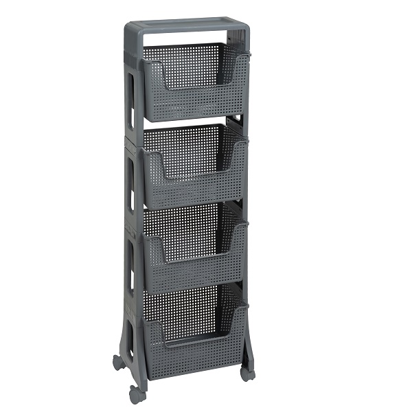 Этажерка "Лофт" 4-х ярусная на колесах (серый) (то)