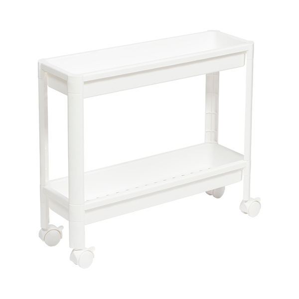 Этажерка узкая VIKEA 2-х ярусная на колесах (белый) (то)