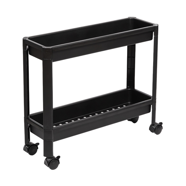 Этажерка узкая VIKEA 2-х ярусная на колесах (черный) (то)