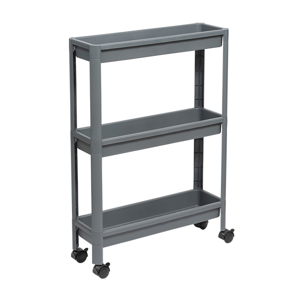 Этажерка узкая VIKEA 3-х ярусная на колесах (серый) (то)