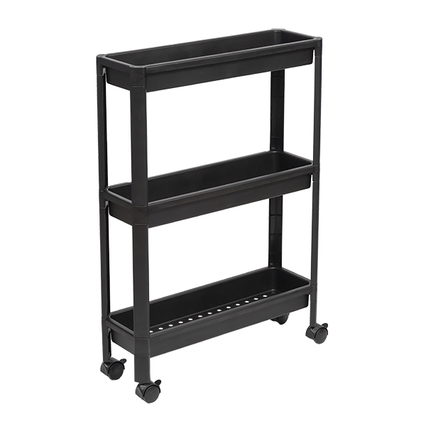 Этажерка узкая VIKEA 3-х ярусная на колесах (черный) (то)