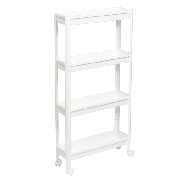 Этажерка узкая VIKEA 4-х ярусная на колесах (белый) (то)