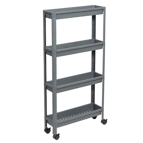 Этажерка узкая VIKEA 4-х ярусная на колесах (серый) (то)