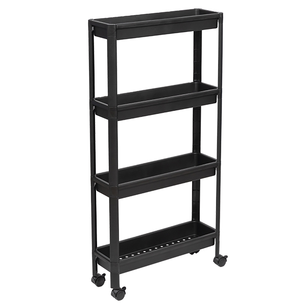 Этажерка узкая VIKEA 4-х ярусная на колесах (черный) (то)