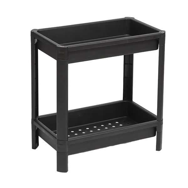 Этажерка широкая серии VIKEA - это идеальное решение для организации пространства на Вашей кухне, в ванной, в гостиной, прихожей или балконе, а также в любом другом помещении. Этажерка представлена в универсальных цветах – белом, черном и сером, она отлично впишется в любой интерьер и станет гармоничной частью дизайна. Изделие состоит из 2-х полок. Она очень удобная и компактная, но в тоже время вместительная и прекрасно впишется в пространство любой комнаты. Стеллаж имеет оптимальное расстояние между полками, это позволяет разместить все самые необходимые полезные в хозяйстве мелочи. Стойки сконструированы таким образом, что при их монтаже создаётся надёжное соединение с полкой - это обеспечивает монолитность конструкции и дает возможность легко поднять и переместить этажерку за верхнюю полку. Каркас этажерки выполнен из прочного пластика и не прихотлив в уходе, достаточно протереть влажной губкой или промыть под струей теплой воды. На дне каждой полки имеются отверстия, благодаря которым влага не будет нака