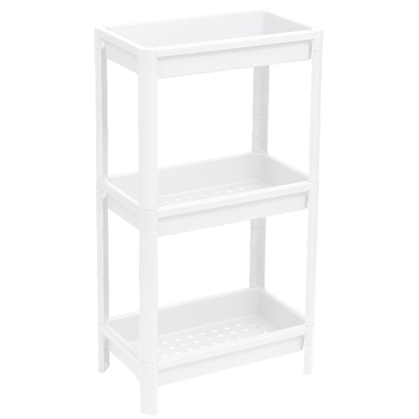 Этажерка широкая серии VIKEA - это идеальное решение для организации пространства на Вашей кухне, в ванной, в гостиной, прихожей или балконе, а также в любом другом помещении. Этажерка представлена в универсальных цветах – белом, черном и сером, она отлично впишется в любой интерьер и станет гармоничной частью дизайна. Изделие состоит из 3-х полок. Она очень удобная и компактная, но в тоже время вместительная и прекрасно впишется в пространство любой комнаты. Стеллаж имеет оптимальное расстояние между полками, это позволяет разместить все самые необходимые полезные в хозяйстве мелочи. Стойки сконструированы таким образом, что при их монтаже создаётся надёжное соединение с полкой - это обеспечивает монолитность конструкции и дает возможность легко поднять и переместить этажерку за верхнюю полку. Каркас этажерки выполнен из прочного пластика и не прихотлив в уходе, достаточно протереть влажной губкой или промыть под струей теплой воды. На дне каждой полки имеются отверстия, благодаря которым влага не будет нака