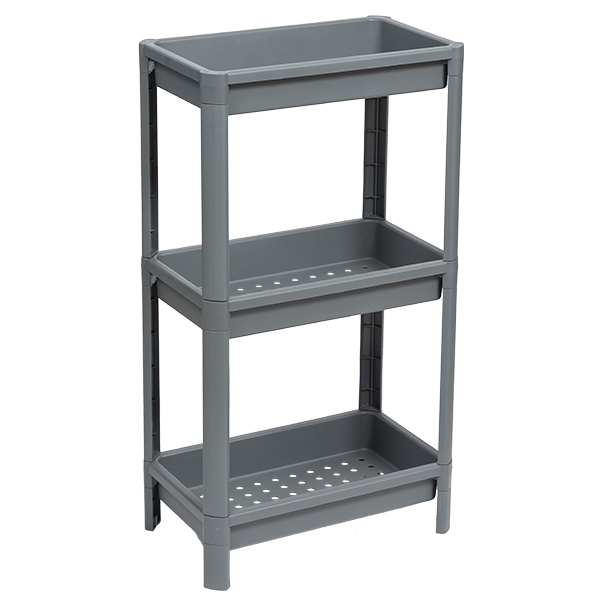 Этажерка широкая серии VIKEA - это идеальное решение для организации пространства на Вашей кухне, в ванной, в гостиной, прихожей или балконе, а также в любом другом помещении. Этажерка представлена в универсальных цветах – белом, черном и сером, она отлично впишется в любой интерьер и станет гармоничной частью дизайна. Изделие состоит из 3-х полок. Она очень удобная и компактная, но в тоже время вместительная и прекрасно впишется в пространство любой комнаты. Стеллаж имеет оптимальное расстояние между полками, это позволяет разместить все самые необходимые полезные в хозяйстве мелочи. Стойки сконструированы таким образом, что при их монтаже создаётся надёжное соединение с полкой - это обеспечивает монолитность конструкции и дает возможность легко поднять и переместить этажерку за верхнюю полку. Каркас этажерки выполнен из прочного пластика и не прихотлив в уходе, достаточно протереть влажной губкой или промыть под струей теплой воды. На дне каждой полки имеются отверстия, благодаря которым влага не будет нака