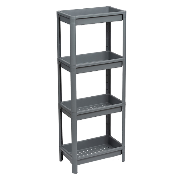 Этажерка широкая серии VIKEA - это идеальное решение для организации пространства на Вашей кухне, в ванной, в гостиной, прихожей или балконе, а также в любом другом помещении. Этажерка представлена в универсальных цветах – белом, черном и сером, она отлично впишется в любой интерьер и станет гармоничной частью дизайна. Изделие состоит из 4-х полок. Она очень удобная и компактная, но в тоже время вместительная и прекрасно впишется в пространство любой комнаты. Стеллаж имеет оптимальное расстояние между полками, это позволяет разместить все самые необходимые полезные в хозяйстве мелочи. Стойки сконструированы таким образом, что при их монтаже создаётся надёжное соединение с полкой - это обеспечивает монолитность конструкции и дает возможность легко поднять и переместить этажерку за верхнюю полку. Каркас этажерки выполнен из прочного пластика и не прихотлив в уходе, достаточно протереть влажной губкой или промыть под струей теплой воды. На дне каждой полки имеются отверстия, благодаря которым влага не будет нака