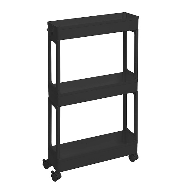 Этажерка узкая 3-х ярусная на колесах (черный) (то)