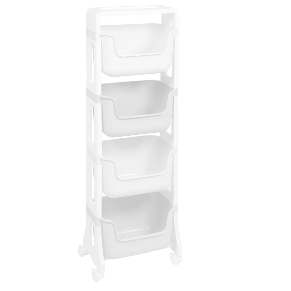 Этажерка "Junior" 4-х ярусная на колесах (белый) (то)
