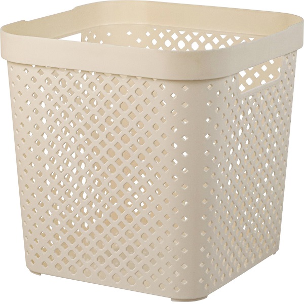 Корзина имеет удобные для переноски ручки-вырезы по бокам корпуса. Крышка на корпусе сохранит визуальный порядок, скрывая и защищая содержимое сверху.