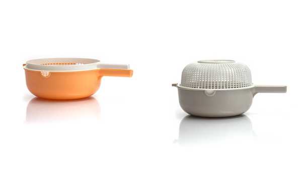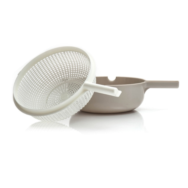 Это инновационное изделие, состоящее из двух частей, большого и малого дуршлага, выполненных в различных цветах. Оба дуршлага имеют безопасную эргономичную ручку, которая удобно помещается в руке благодаря своей форме.