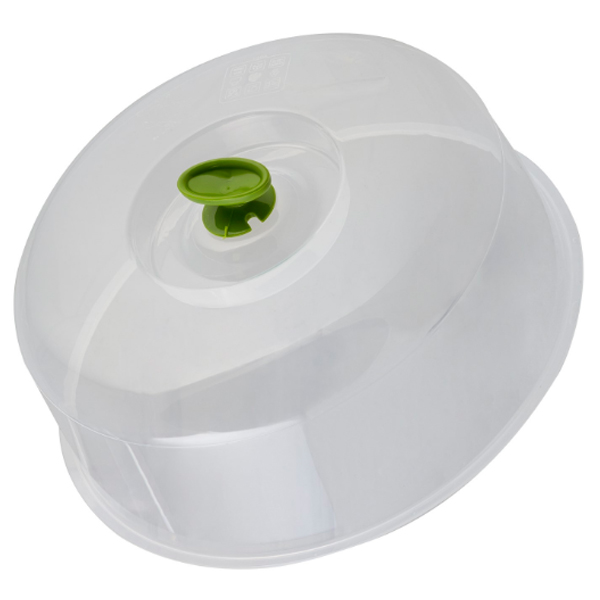 Диаметр крышки - 27 см без труда позволяет накрыть даже самую большую и глубокую тарелку. Крышка выполнена из прочного высококачественного пищевого пластика, не имеющего сторонних запахов, благодаря чему вы будете наслаждаться только ароматом приготовленного блюда.