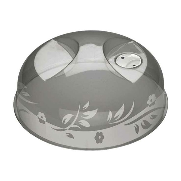 Крышка с клапаном для выпуска пара предохраняет внутреннюю поверхность микроволновой печи от загрязнения в процессе разогревания или приготовления пищи (с открытым клапаном). Клапан для выпуска пара имеет два положения: открыт/закрыт. Имеется удобная ручка для удержания крышки. Можно использовать в холодильнике, как крышку для торта, сыра и т. п. Не впитывает запахи, можно мыть в посудомоечной машине. Крышка задекорирована оригинальным растительным орнаментом.