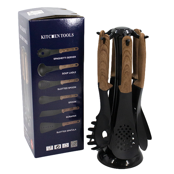 Набор кухонной навески 7шт (ложка для спагетти, половник, шумовка, ложка, лопатка-2шт, подвес)