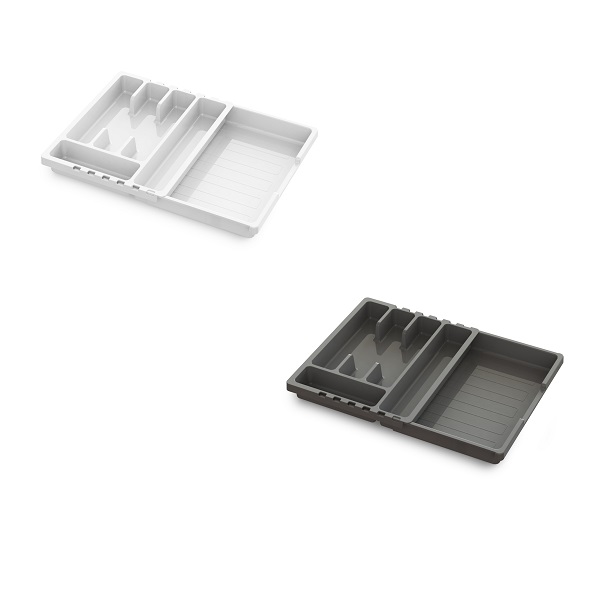 Универсальный раздвижной лоток СМАРТ для столовых приборов подойдет под разные размеры выдвижных кухонных ящиков. Ширина лотка регулируется от 30 см до 50 см. Пять основных ячеек разного размера и одно выдвижное отделение позволят удобно расположить столовые приборы, разделив их по назначению, что сократит время на поиск нужного предмета. Лоток выполнен из износостойкого пищевого пластика, устойчивого к царапинам. Материал не боится влаги, не впитывает запахи и прост в уходе - лоток можно мыть в посудомоечной машине.