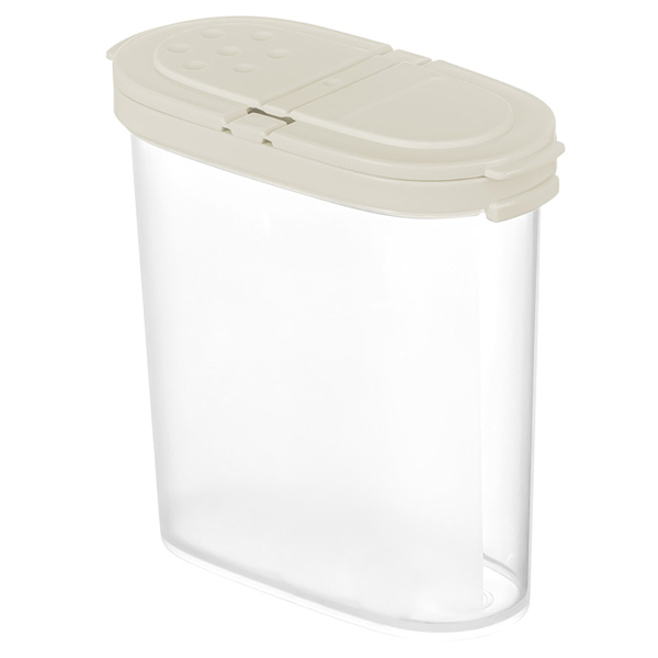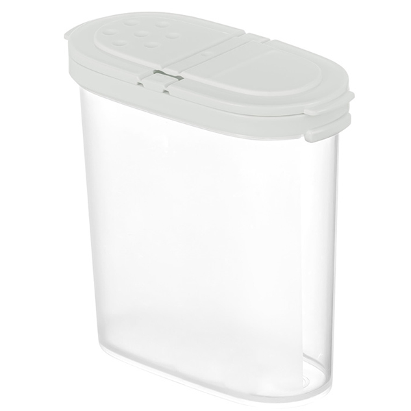 Крышка контейнера двойная: для мелкодисперсных и для крупнозернистых специй. В зависимости от свойств специй, открывается одна из сторон крышки.